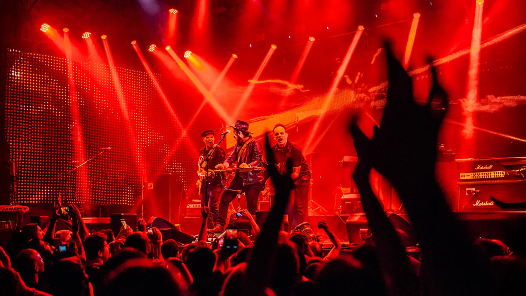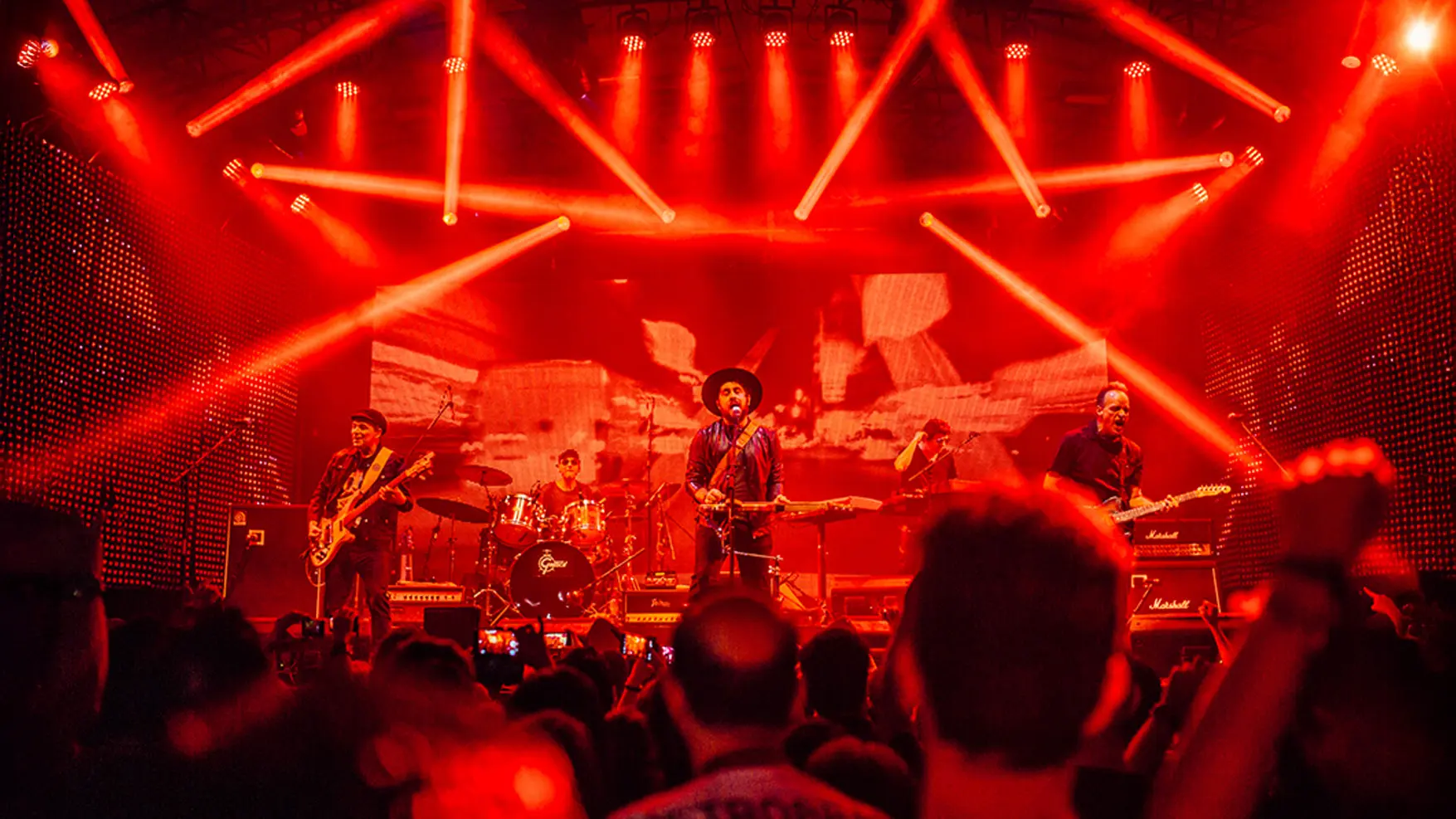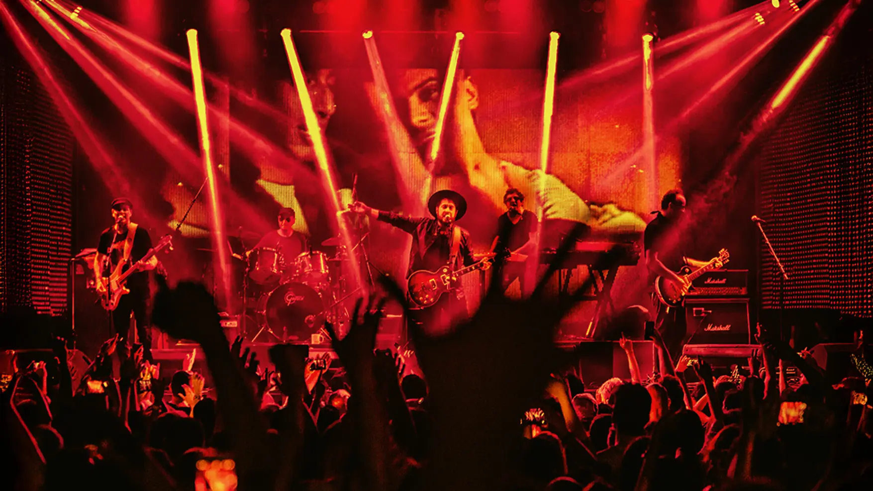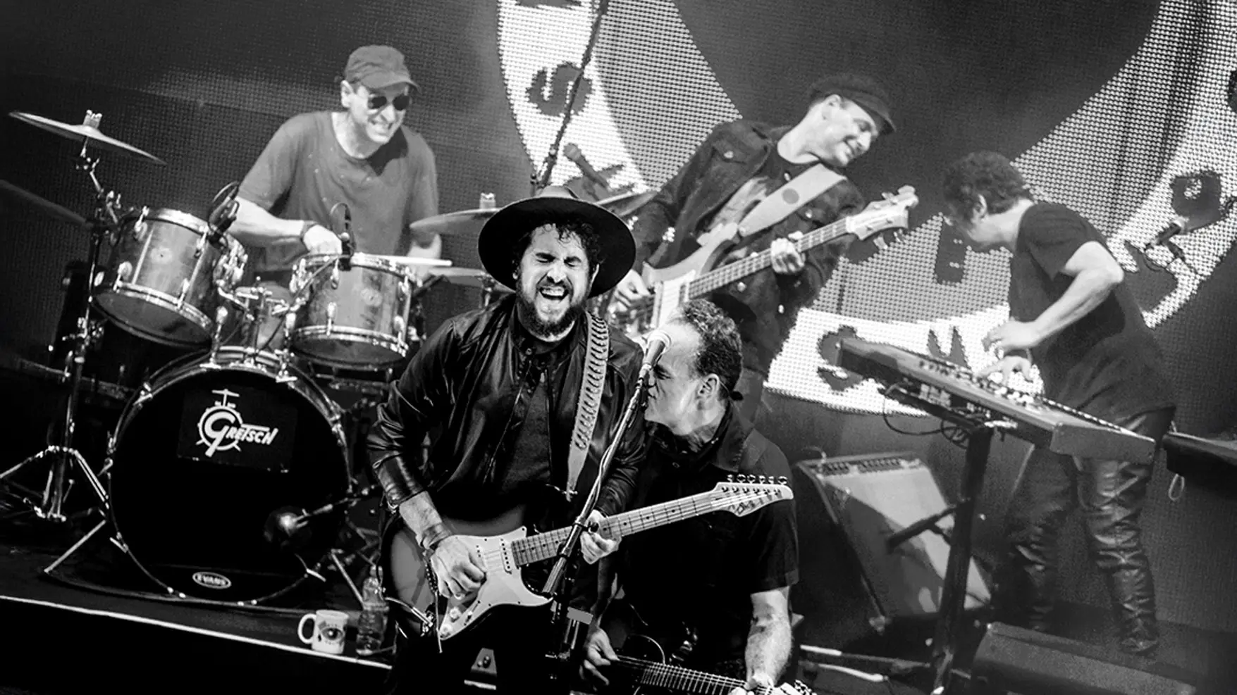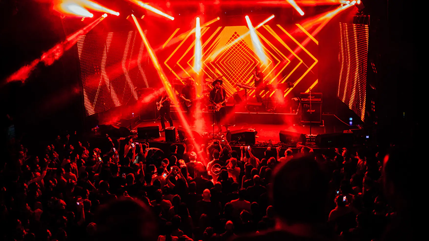 Assumimos a direção de arte e design da turnê, cuidando de cada detalhe: da linguagem gráfica à fotografia, passando pelos conteúdos digitais, peças de divulgação e cenografia. Para a direção do show, convidamos o artista Batman Zavareze, com quem desenvolvemos um espetáculo visual vibrante que dialoga com o novo momento da banda.
