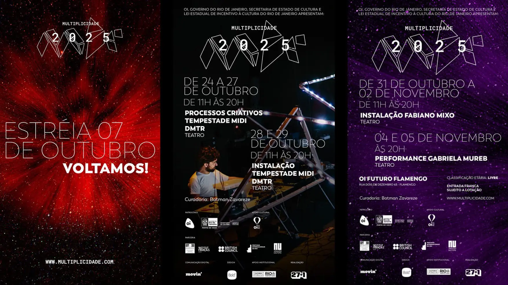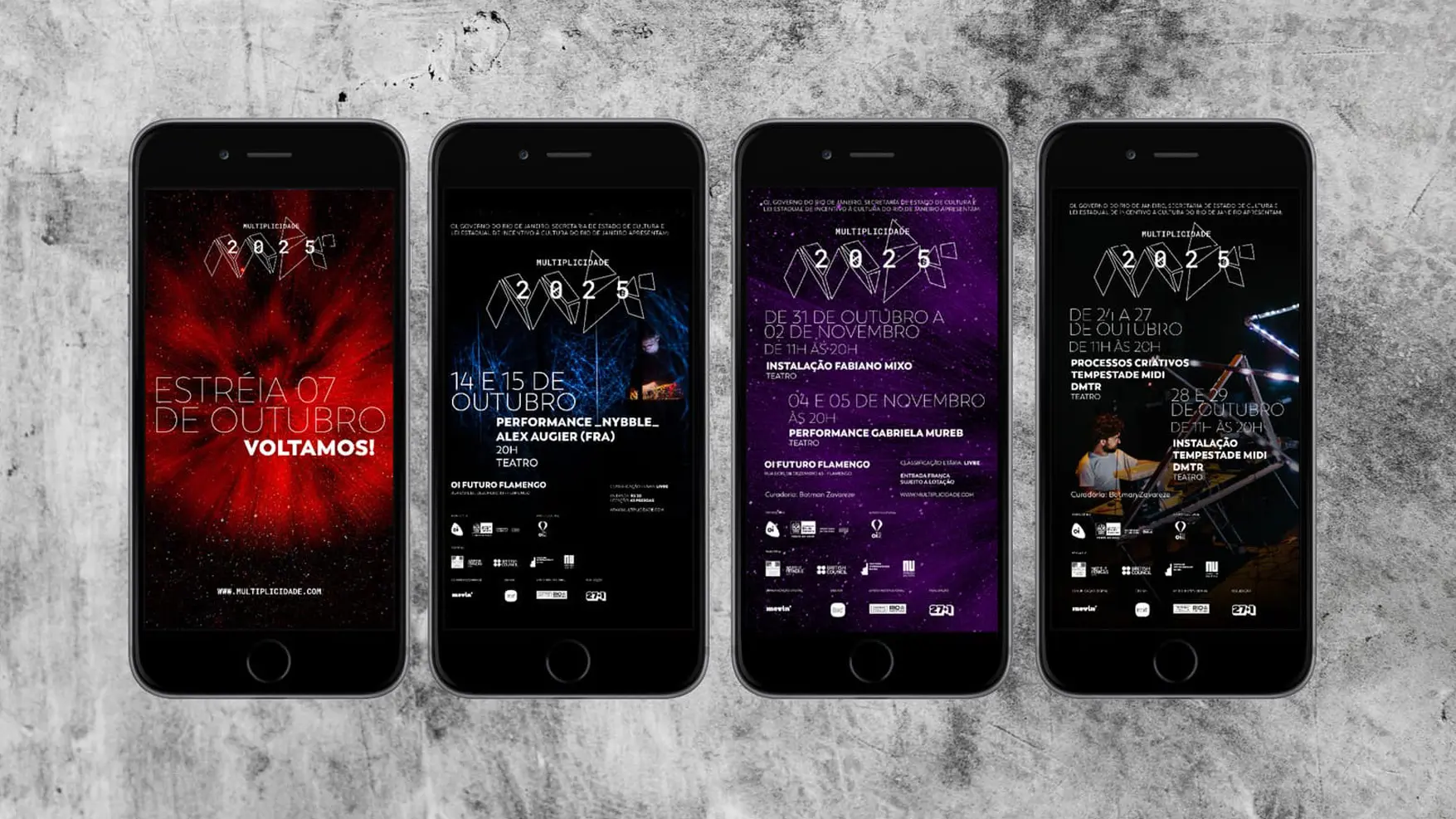 O Festival Multiplicidade é um território fértil para experimentações visuais. Na edição Barulho, desenvolvemos a identidade visual e a comunicação a partir do conceito de explosões criativas, transformando energia e movimento em linguagem gráfica, ampliando o diálogo entre arte, tecnologia e experimentação.