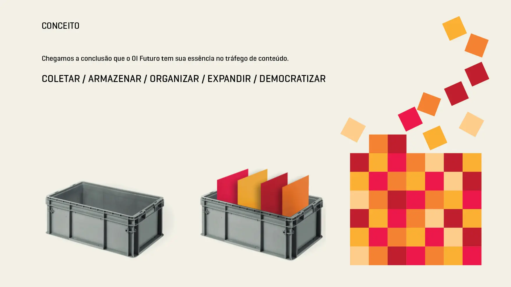 A solução parte de cinco formas distintas, desenvolvidas para simbolizar cada uma das áreas de atuação. Quando reunidas, essas formas se unem em um único símbolo, que representa o impacto coletivo das iniciativas promovidas pelo instituto ao longo dos anos. O design traduz, de forma sintética e poderosa, a ideia de convergência, colaboração e movimento.