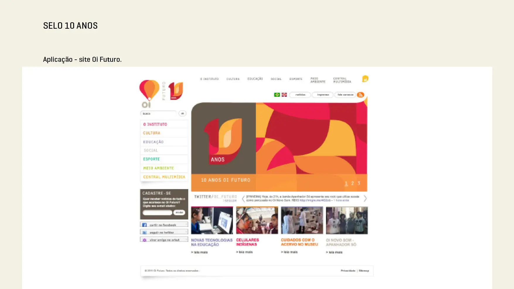 A identidade comemorativa também se desdobrou em uma campanha de comunicação completa, com materiais digitais e impressos, reforçando a presença do Oi Futuro como agente de inovação e transformação social.