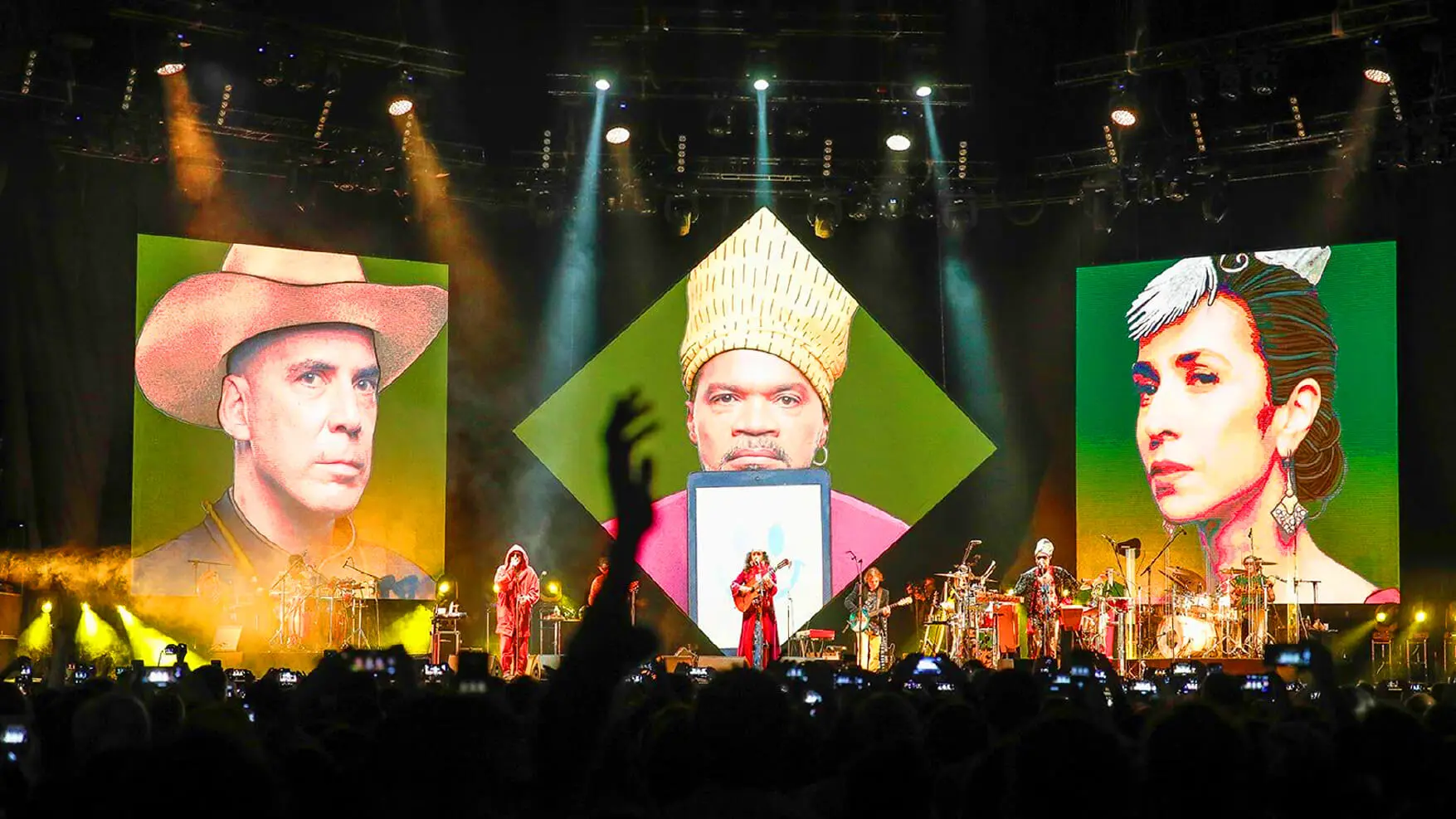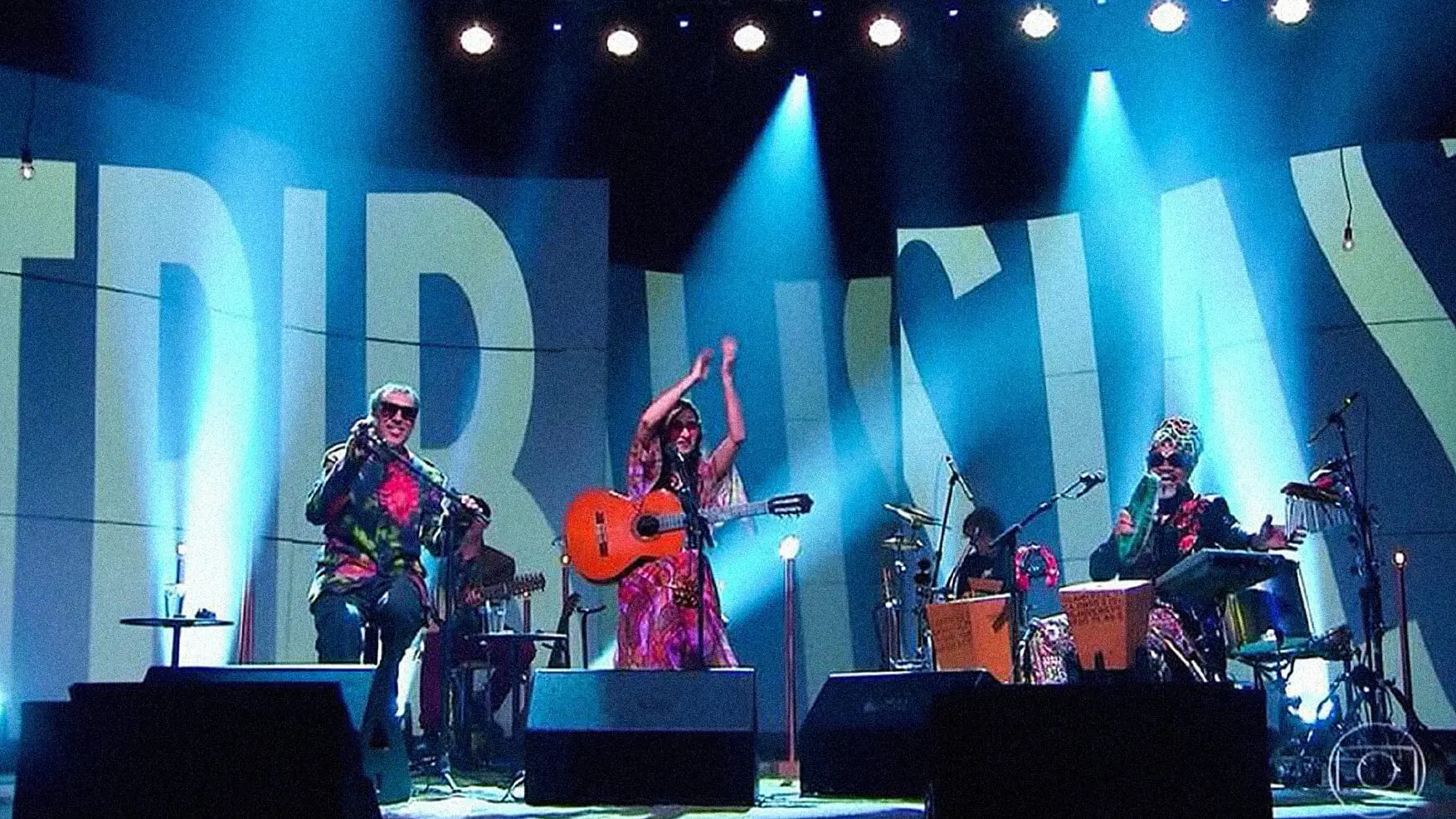 Nossa relação com o grupo começou no design do álbum de estreia, criado em parceria com Vik Muniz. Desde então, o público esperava por esse momento: uma turnê que reunisse os três artistas no palco. A força desse encontro guiou toda a construção visual do projeto, inspirado na brasilidade moderna do Manifesto Pau-Brasil e na obra de Tarsila do Amaral.